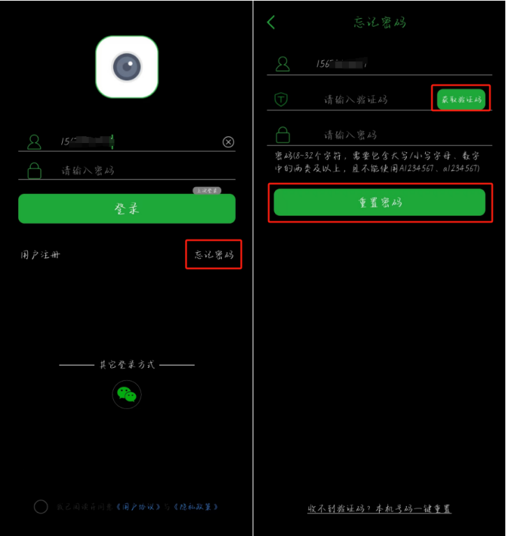 您好,如果APP忘记密码可通过绑定的手机号或邮箱重置密码,在账号登录界面点击忘记密码,输入手机账号——点击获取验证码——输入新密码即可。