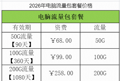 您好,4G套餐以充值界面为主,下图为常规价格仅供参考,因活动/业务等不同,所以部分时间段价格会有浮动,4G模组不同也有可能套餐价格不一样,具体建议联系销售厂家。