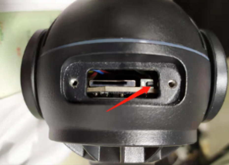 2、若设备没有尾线或尾线上没有按键,可以打开设备机身上的后盖,长按内存卡卡槽旁的复位键即可将设备恢复出厂设置。